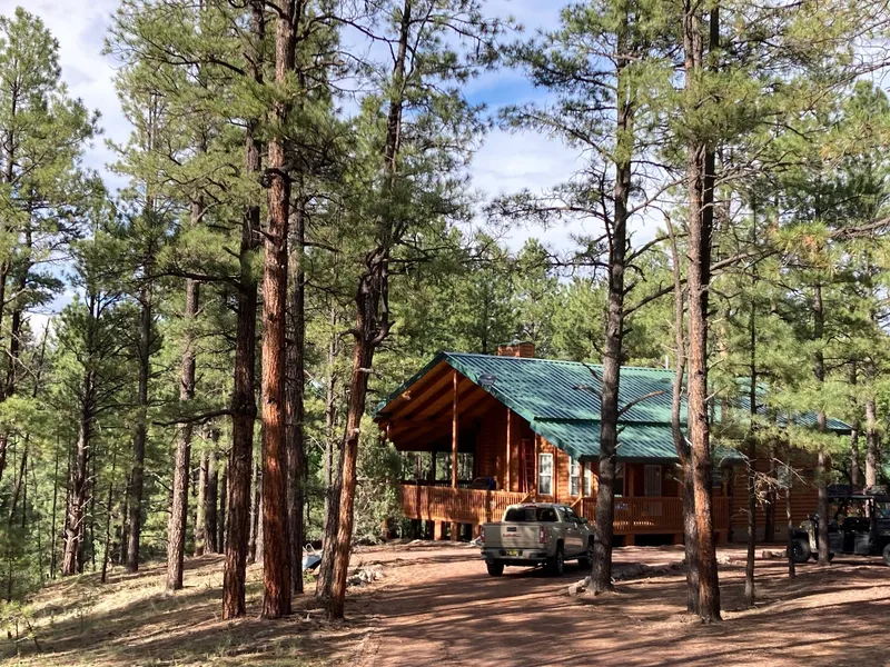 Alpine Mountain Retreat combines mountain views and a handsome log home giving you the ultimate mountain getaway experience. Beautiful log home of 1,800 square feet with another 1,400 square feet under covered porches all on 5 acres bordering the Gila National Forest.