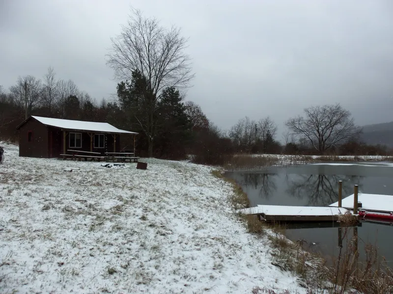 New York mostly wooded with cabin, ponds and adjoining stateland: Come get away to this incredible 211 acre property any time of year. Mostly wooded with a great mix of open land and thick brush, the deer hunting is incredible! An abundant trail system makes every area of the property accessible by ATV. Two nice ponds supply plenty of water for game or games. The cozy little 200 sq. ft. cabin with a covered deck and electric is nestled alongside one of the ponds and would make a great place for picnics, family outings or a hunting shelter. Located just 6 mi. from Ellicottville and Holiday Valley, this is the perfect place for the family that ski's, snowboards or just likes to have fun. Just 10 minutes away from Salamanca and the Casino, you'll never run out of things to do. All rights will transfer with the property, but there is a timber harvest in progress down to 14" in diameter at chest high. This contract will run out in the fall of 2015, and full timber rights will go to the buyer.