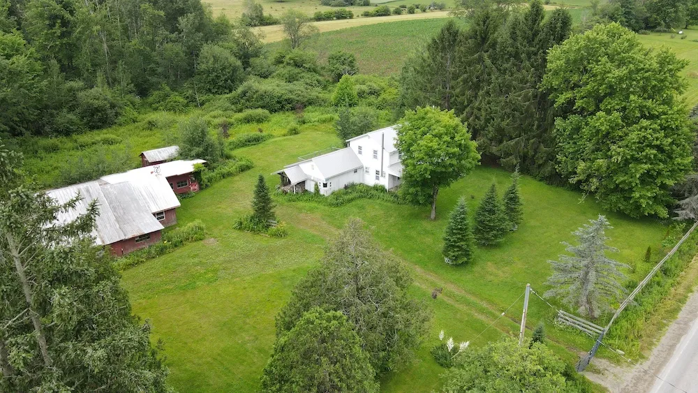 Just outside of Conewango, amongst neighboring farms, you will find this small farmette ready for your vision to transform into a residence, hobby farm, weekend getaway or rental property. Sitting on a corner lot, there are multiple potential entrances on Seager Hill Road and Myers Road. This 2560 square foot house has a first-floor bedroom with four more bedrooms upstairs. The living room is enormous, almost 400 square feet, with French doors that lead into another 400 square foot formal dining room or potential second living room for hosting large family gatherings. Most of the flooring in the house is hardwood floors. The kitchen has oak cabinets with glass doors. Outside, there's a barn/garage/workshop complete with two garage bays and several stalls for farm animals. Most of the roof is metal, with some asphalt shingles on the backside. Most of the house will need to be finished with most utilities already ran just needing to be connected. The coal and wood-burning stove in the living room is included and is the primary heat source for the house. Priced well to sell, schedule your private showing of this future farmette today! ADDITIONAL INFO: Electric, well, and septic on site. 2560 sq ft. Built in 1986. Barn. Randolph schools, GMOs convey. Taxes $1699 (2022). AS-IS
