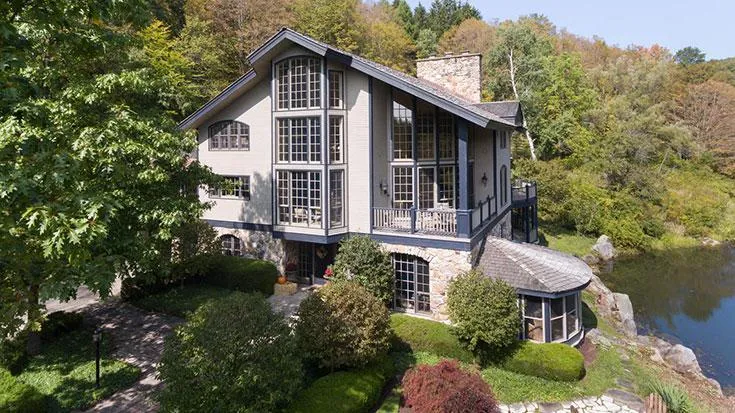 Auctions: 3:00 PM 6/27/2019 A skier's dream home awaits you in the New York mountain community known as "The Aspen of the East". This rare home designed by renowned architects Knolls & Engel is a breathtaking 5BR 3.5BA residence. Resting on 70+ acres enjoy your own private and serene views. Large open spaces and massive glass and stone features meld perfectly in the contemporary design of the home. This home is a chef's delight with a gourmet kitchen including top-end appliances, granite peninsula and ample storage in the butler's pantry. Entertain guests in the dining room offering an immersive feel to the outside with vaulted ceilings and sunrise views from the window wall. The large kitchen opens into a warm and inviting family room with its own brick fireplace and windows offering gorgeous mountain views. There are many other luxurious updates throughout the home including the master suite. Upstairs 5th bedroom could also be used as a game room. Relax and play in your very own small lake and stocked pond. Invite friends to stay in the newly built guest cottage. There is also a detached 4+ car garage and loft. Enjoy the outdoor life and prepare a meal in one of the outdoor kitchens after spending a day at the shooting range. No detail has been missed! The home will be selling fully furnished with custom furniture and is ready for move-in. This is a stunning year-round property just waiting for you. Note: A Buyer's Premium (Buyer's Fee in WI) will apply for this property. Please see Terms of Sale for details. Broker Licenses: NY Philip R. Heiliger RE LIC 10311207661; Williams & Williams Mrktg Srvcs, Inc. RE LIC 109911428