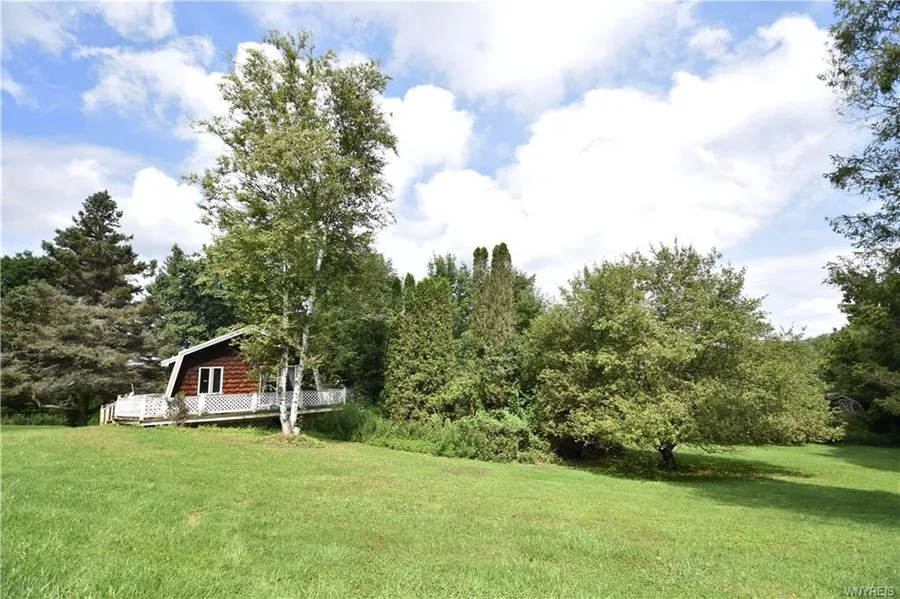 Make this affordable country home yours!! 3.61 acres large private yard with apple trees, grape vines & berry bushes, Small Barn for animals and pond. Open concept first floor Kitchen, Living & Dining room with hardwood floors, cathedral ceilings and sliding glass door to your large wrap around deck. Main Floor Bedroom & Bath with a large walk-in closet and access to your wrap around deck. Fully finished walkout basement not included in square footage features a full bathroom, family room or additional room could be used as bedroom if needed and lots of closets for storage. Detached garage with loft for storage or workshop. Get ready to move in and enjoy this beautiful property and call it home, or this home would be the perfect weekend home in the country for the family to get away from it all. Great location, only 5 minutes to Lime Lake, 20 minutes to Ellicottville and 45 min to Buffal...