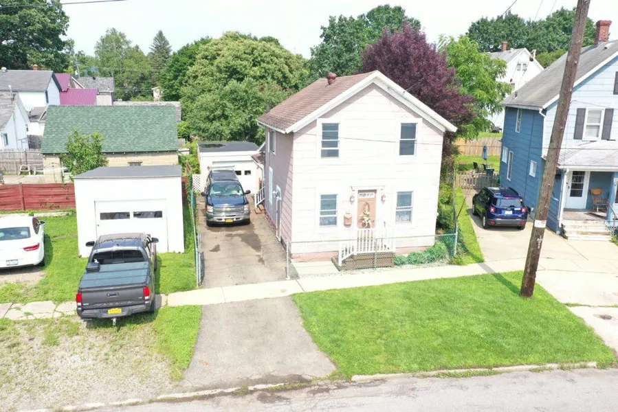 Spacious 2 bedroom, 1.5 bath home nestled in the quiet family-friendly north side of Olean. Walk into the open kitchen area with plenty of cupboard and counter space, and a custom tile backsplash around the top of the counter. Next to the kitchen is a half bath/laundry area with storage space. Venture into the dining room/living room area with original hardwood floors. There are large windows in immaculate condition throughout the home. Upstairs leads to a full bathroom and two large bedrooms with closets.