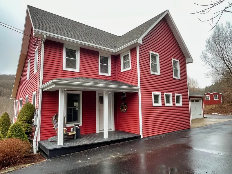 Welcome to this hillside country home just minutes to the ski slopes and downtown Ellicottville. Spectacular views of mountainside and Holimont. Pond with dock and entertainment gazebo, with a nice running creek. This completely remodeled and well kept home includes, a large living room, dining room/kitchen and great room. The kitchen is a chef's delight. First floor master suite with spectacular bath, Two additional 2nd floor bedrooms and full bath. Beautifully finished lower level which is walk out with daylight and offers a second fire place and full bath and hot tub. Expansive deck, 2.5 car garage with large shed. Propane piped to deck for grill. Everything one could want in the perfect year round retreat.