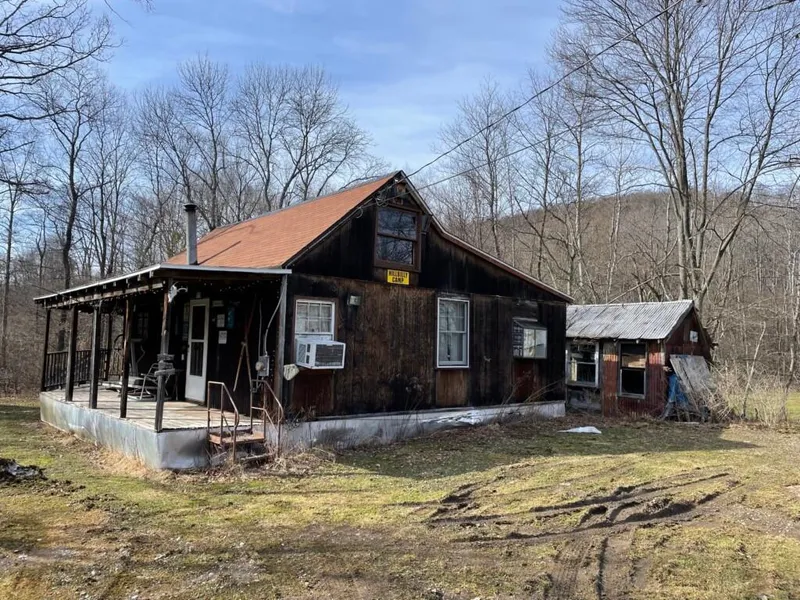 Looking for your private hunting retreat or family get-away? This 890 sq. ft. cabin has 2 bedrooms, 1 full bathroom, a large kitchen and dining/living room combo. It has a wood stove, electric, septic and well. There is natural gas connection available. Upstairs leads to a small attic area which is used as a third bedroom. The wrap-around porch allows for family BBQs and enjoying the sounds of the year-round running stream just behind the cabin. The cabin is located roughly 185 feet from the road. The property is mostly level with some slope on the north side of the property. There has been a recent select cut with plenty of firewood available. Heavy-flowing stream runs through the property which is great for the kids on those hot summer days. Whitetail deer sign throughout makes this an excellent tra...