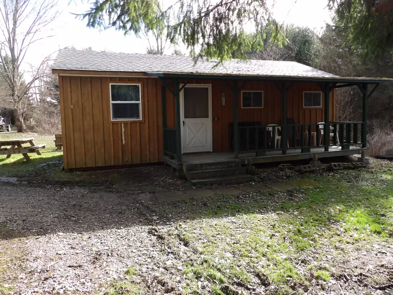 New York wooded land with cabin, stocked pond, stream and trails for sale. It seems everyone dreams of a place to get away from it all. For some that may include a private spot off the beaten path where they can hunt, fish, hike, camp or just RELAX. This 10-year-old Amish built cabin on about 30 acres sits well back off the road. Get to it via a maintenance shared ROW drive that crosses over a trout stocked stream on a newly built bridge. The off-grid turnkey cabin has 2 bedrooms and 100-amp electric service for heat and convenience. Water is carried in and toilets are portable. Most furnishings stay. The older garage is now only useful to keep tools and toys under cover; a new ¼ acre pond was built in 2013 and has been stocked with bass and perch. Lots of whitetail sign on the lower lots indicate their use for bedding, cover and browse. Turkeys, bear, grouse and woodcock are prevalent. An internal trail system provides easy access for hiking, ATVs or hunting throughout. Most stands will stay. There is also electric service to the back 4 parcels that are beautifully wooded with an additional campsite area. An old trailer and well are not functional, trailer provides storage or get out of weather use only. Everything is being sold “Where is, As is”.The back 20 acres is mostly mixed hardwoods including maple, Black Cherry and Hickory with nothing harvested within the owner’s recollection. This is a great location, just a 15-minute drive from Ellicottville and Springville and only 40 miles from downtown Buffalo. Just off site there are many area activities such as skiing, golf, shopping restaurants and other recreation this area is known for.ALL OFFERS MUST BE SUBMITTED BY 5/10/22 @ 5PM.