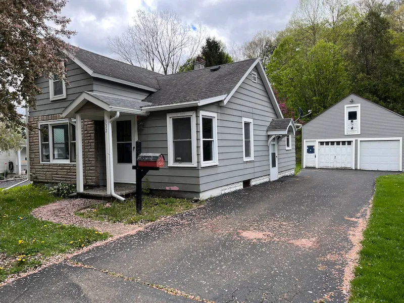 Fresh curb appeal, rock-solid bones, and a location that puts Western New York's best outdoor playgrounds at your doorstep- 332 Jamestown Street is ready for its next chapter. Step onto the brand-new front porch and through one of two new storm doors to find a tidy 960 sq ft layout with two bedrooms, a full bath, and a bright living space just waiting for your finishing touches. The heavy lifting outside is done: new fascia, soffits, seamless gutters, and fresh siding on the oversized two-car garage, which also sports a new window and a full-height second-floor loft for storage, a workshop, or future expansion. Set on a quiet village street served by municipal utilities, this home offers small-town convenience with big possibilities. Stroll a few blocks to local shops, cafs, and the historic Hollywood Theater, or drive five minutes to Cattaraugus Creek for kayaking and renowned steelhead fishing. Hikers and wildlife lovers will appreciate being less than fifteen minutes from the dramatic cliffs and waterfalls of Zoar Valley, while commuters can reach Buffalo's growing job market and international airport in about forty minutes. Seasonal festivals, ski slopes at Holiday Valley, and Lake Erie beaches are all within an easy drive, giving you four-season recreation without sacrificing day-to-day amenities. Whether you choose to polish the interior into a cozy retreat, rent it out, or build equity over time, this property delivers a rare mix of updated exterior infrastructure and blank-canvas interior potential, plus a garage most homes in this price range can't match. Secure your foothold in Gowanda's friendly community and make 332 Jamestown Street your own launching pad for the good life in Western New York.