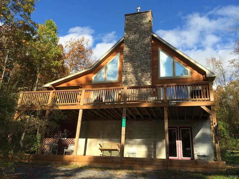 Welcome to the Finger Lakes where you will find pristine landscapes tailored by retreating glaciers. There is no better setting than that of this year-round log home. Hidden at the end of a private country lane and surrounded by six acres of woods with trails, it overlooks picturesque Owasco Lake. This timeless Adirondack lodge style home has all the modern conveniences and it's just 15 minutes to Auburn City limits. A magnificent grand staircase leads to a balcony that overlooks a natural wood interior and bright open floor plan. The field stone fireplace reaches for the cathedral ceilings. A pair of sentinel sliders usher you outside to a beautiful wrap around deck with stunning views. The walk-out garden level includes a rec room and plenty of space to grow. Deeded and level lakefront rights mean you can swim, fish, paddleboard or add a dock for your watercraft. The entrance to the la...