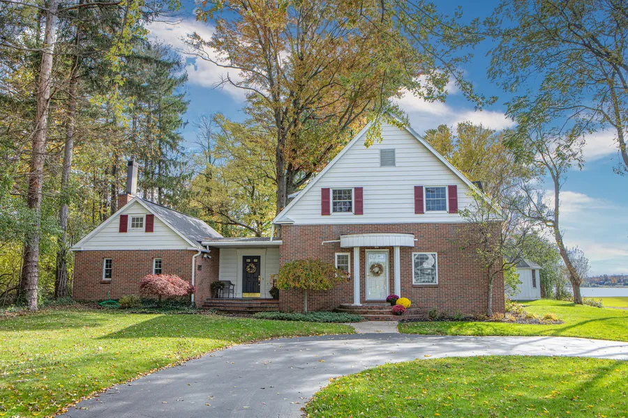 Owasco lakefront in premier lakeside community. This lovely brick home nestled on 3/4 acre offers private lake access with a lakeside deck perfect for entertaining, level grassy area, and the ability to have a hoist and dock. This well built home with hardwoods throughout is the original homestead in this stately quiet neighborhood. The first floor features an expansive Great room perfect for large gatherings, Family room with fireplace overlooking the backyard patio, adjoining 2nd kitchen, and 1st floor full bathroom (this area is perfect for home office, private suite, in-law apartment). Additionally, the 1st floor offers a sunny kitchen, laundry, half bath and mudroom. The second level boasts 3 oversized bedrooms and 2 full baths; complete with lake views. The wooded lot currently features limited lake views (this property does own row of trees), no residence behind or to the west property line. The perfect combination of lakefront with separation from neighboring properties to spread out. This wonderful Finger Lakes location is in close proximity to 2 golf courses, lakeside park and marina, theater, restaurants and wineries! Delayed showings until Mon 10/30 @ 10am