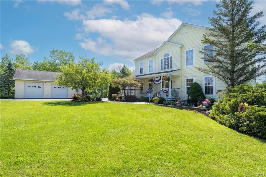 A picture perfect colonial set back in a country setting with nearly 14 acres in Cato, NY!! Close to Baldwinsville, Syracuse and Auburn. This colonial has all you will ever need. Head inside to the open floor concept where you will find a sitting area, family room, dining room and living room ready for your entertainment. Kitchen is prepped with new counter tops, flooring and stainless appliances. Also, on the first floor is an in-law suite/apartment equipped with a full bathroom, kitchen, living space and bedroom. Use this for a guest or even your business! Also offered on the first floor is a dog kennel area that leads to a fenced in back yard. Heading upstairs you will find 2 newly carpeted bedrooms, a full bathroom, and a master with a ensuite bathroom. Central air and a full walk out basement included! Outside is where the country beauty shines... a detached 2 car over sized bay garage met by your paved driveway. Out back is a pond along side a 20x50 pole barn equipped with water and electric. The gardens have been professionally landscaped every year! This is awaiting your rocking chairs on its front porch!!