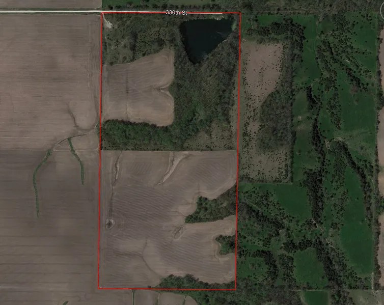 Gently rolling tillable acres with mature timber and a beautiful 3.5 acre pond full of mature fish on the north 40. Fingers of nice timber for recreational use on the south side with good CSR soils. Take advantage of the added grass areas for bird and wildlife or clean up to maximize production.