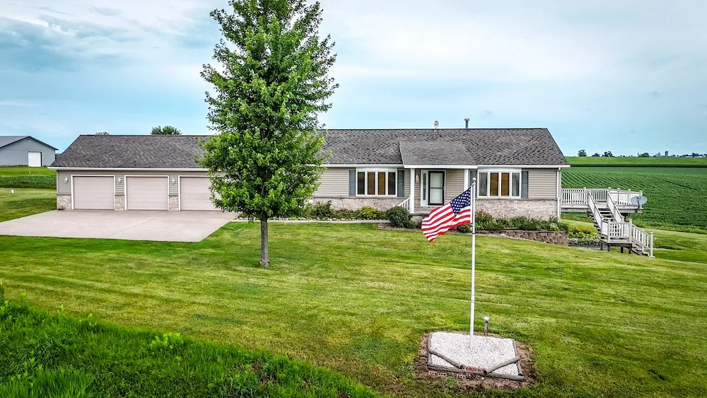 Perched on a gentle hill with wide-open views of the countryside, this sprawling ranch home has been lovingly maintained by the same family since being built in 2004. Settled on 1.3 acres, just 2 miles from Durant and 3 miles from Interstate 80, it offers peaceful living with everyday convenience. The main floor features a large, open-concept kitchen, dining, and living area with brand-new carpet and tons of natural light an ideal spot to gather with your favorite people. The stunning primary bedroom includes an en-suite spa-like full bathroom, a walk-in closet, and a spectacular view. The main floor rounds out with an additional guest bedroom, full bathroom, and laundry area. The finished walk-out lower level is home to a third bedroom, a full bathroom, brand-new vinyl plank flooring, a second living area with a cozy fireplace, and separate access to both a lower patio and the oversized 3-car attached garage. Outside, the yard offers plenty of room to play, garden, or simply take in the view beneath mature trees. The setting is quiet, comfortable, and easy to maintain. This home has been part of one family's story for more than two decades. Now, its ready to welcome someone new.