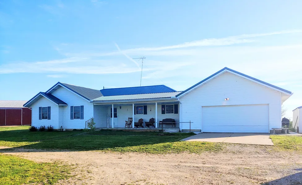 10 acres sits off B highway east of Sheldon with a lovely hill top setting- 3 BR 2 BA has an open floor plan with extra wide hallway and a fabulous master suite with large walk-in closet and master bath with shower and jetted tub. There is also a 8 x 12 poured storm access through the 2 car attached garage. You can enjoy the view from the covered deck. This low maintenance home was built in 2003 and is in fabulous condition. It's all electric with a wood stove system ducted into house for economic heat. The 10 acres is a great spot to raise a few calves or horses with perimeter fencing, lot, pond and a (check size of building) outbuilding. The outbuilding has 3 loft storage areas, electric and super nice! This ''everything you're looking for'' package is priced at only $229, 900 and won't last long.