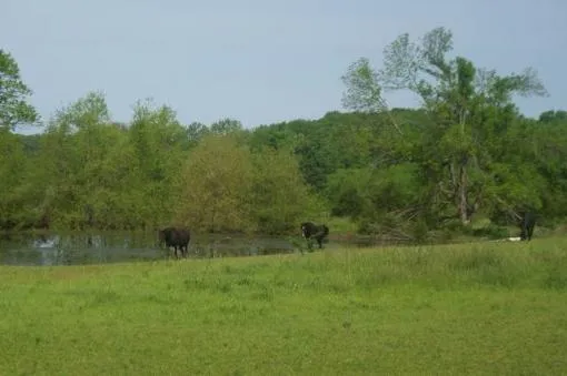 Acreage has perimeter fencing, but is in need of repairs or replacing. Land needs brush hogged & cleared, but could make a beautiful building site. Horses are currently grazing on the pasture where there is one large pond and two small wet weather ponds. Also on the property is a 1993 4 bedroom doublewide mobile home that has approx. 1,750 sq ft. of living space. The home is all electric, with ceiling fans, back deck and a newer C/H unit. There is an older 2 story metal barn in need of repairs and an old home stead needing tore down. This property is less than a 1,000 feet from Sac River and has farm ground between the two. This is where the big ones are. See the Google