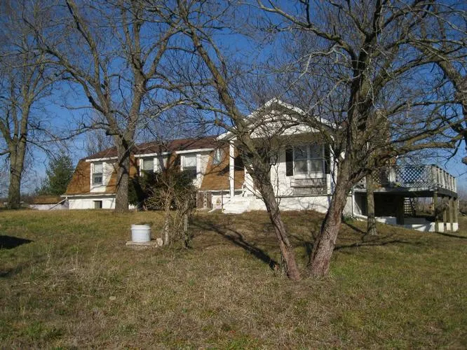Wonderful view overlooking the 38 acres from this hillside 3000 sq. ft. possible 6 BR home. Home would also work for 2 families wanting to share as each floor has living room, bedrooms, baths and kitchen. Main floor has lovely native stone fireplace. Several outbuildings include a nice 30 x 60 shop with concrete floor, 18 x 24 garage and chicken coop. Pasture is fenced with some cross-fencing with approx. 80% open. Property also has 400well. Priced to sell! Complete package only $134,900.