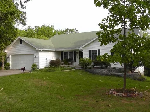 An executive quality home nestled in the Missouri Ozarks. Well maintained custom built home with 153 acres. US Highway 54 frontage and adjacent to over 300 acres of Missouri Department of Conservation Land. Although property offers seclusion, it is only minutes to Pomme de Terre lake and shopping. The home features 3/4 inch oak hardwood floors in kitchen foyer and dining room. There is custom oak trim though out the house with oak cabinets. Vinyl clad, double hung 6 ft. Anderson windows allow loads of natural light to accent the vaulted and coffered ceilings. Built in shelving with accent lighting completes that elegant feel. There is a partially finished Walk out basement with an open floor plan containing a full kitchen and living area. So many amenities you really must call or see for yourself. The property has a detached double car garage or workshop, a carport large enough to handle an RV or large boat, a Morton building, and an outdoor entertainment area with fireplace.
