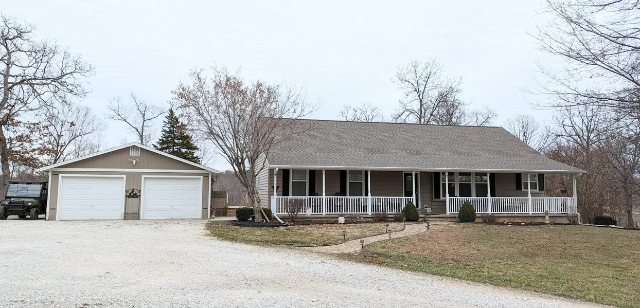 Sitting on a full basement that has 9 foot walls, windows and a walkout allow for the addition of bedrooms or continue using it for a recreation room. There is also a 20 x 20 storage room, bathroom and utility room. The home was built in 2004 and has been extremely well maintained with a new roof put on in the summer of 2022. There is also a 2 car garage. Located just off State Hwy J between Stockon and El Dorado, yet also close to Collins, with new high speed internet.. what more could you want? Call for your showing ASAP!