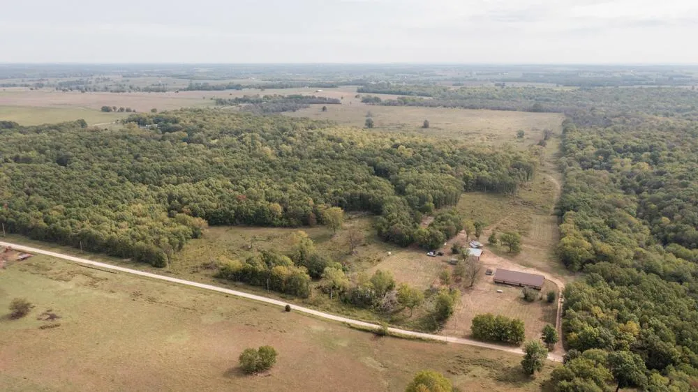Midwest Land Group is proud to present this exceptional 160-acre recreational farm just outside of Stockton, Missouri. Enjoy quiet country living on this diverse acreage that has so much to offer. The stunning 2,756 square foot home custom built home, featuring a 1,188 square foot attached garage, seamlessly combines rustic charm with modern amenities.