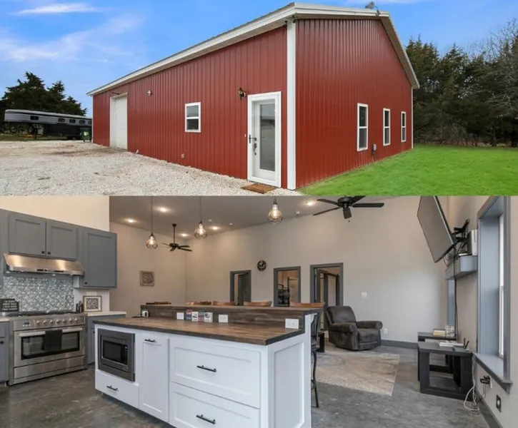 The modern and spacious shouse features an open layout with contemporary design, all set on a durable concrete slab foundation built to stand the test of time. The home portion has been upgraded with three new mini splits for efficient heating and cooling.