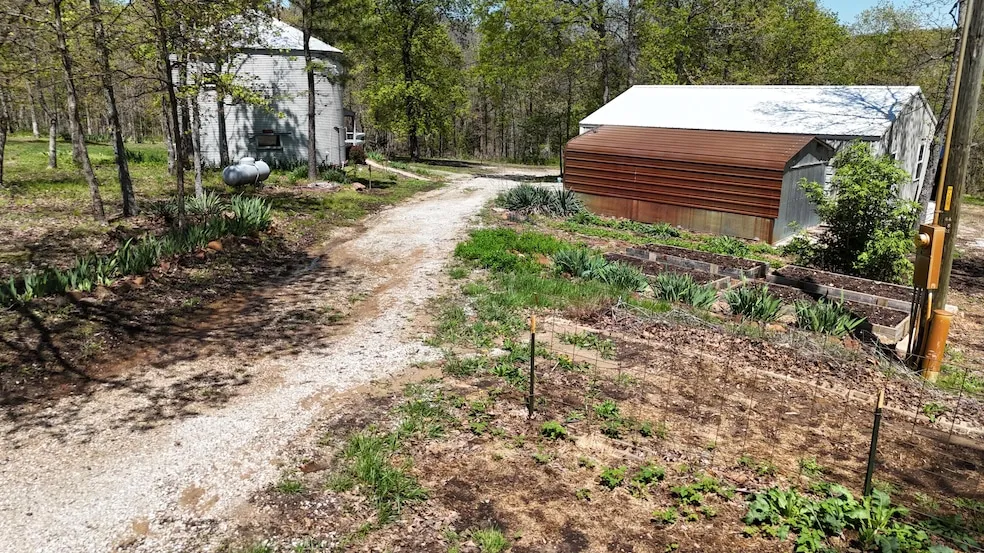COUNTRY RETREAT! If you are looking for seclusion - this could be the place for you! Located about 20 minutes to Stockton Lake, this 4.5 wooded acre property is tucked away in a private setting with a unique silo home. This 1.5 story home has main floor living, and the non conforming bedrooms are in the loft area. A wood stove brings in extra warmth, and there is also a mini split. You can enjoy nature in this peaceful setting from the covered front deck. The 24' x 32' 2 car detached garage/shop has concrete floors and is foam insulated, wired for 220, & has an 18 x 32 lean to attached. Next to the garage is another shop with concrete floor. There is also a detached 2 car carport for any additional vehicles, boats, etc. A wood shed has room for your wood & additional storage. Like to garden - there are raised beds ready for you. Spring brings on the many beautiful flowers planted on the property. Don't miss out on this one!