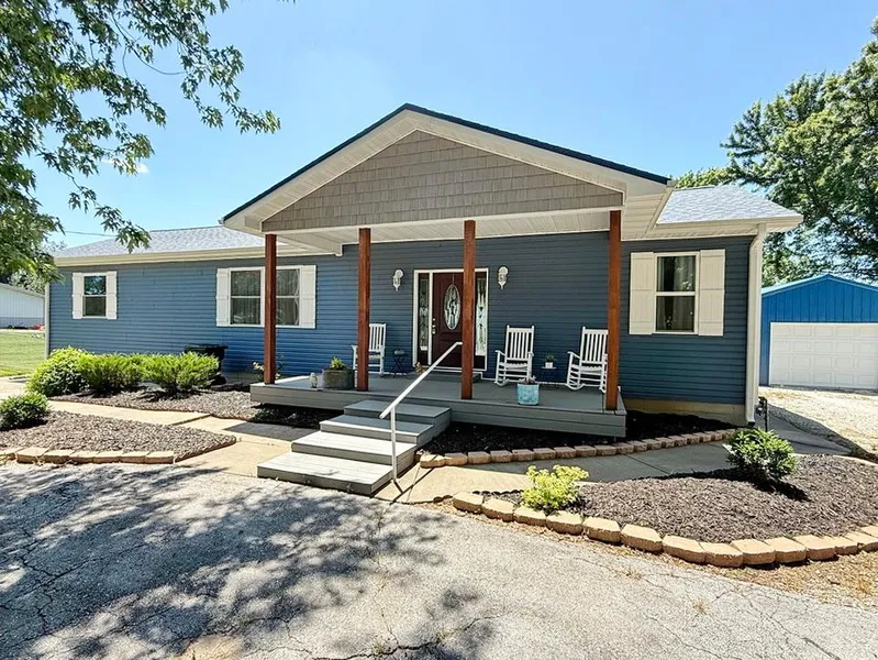 Convenience, Location, & Style- thats what is offered in this like-new home just outside of El Dorado Springs, MO. This modern home was built in 2022 and is completed inside and out with top-end and low-maintenance finishes that will bring lasting comfort. With 1,490 sq ft on the main level and another 1,104 sq ft in the unfinished basement, this home provides abundant space and room to grow. The center of the home is an open living, dining, kitchen area featuring nice, vaulted ceilings, great lighting, and excellent functionality. The kitchen features beautiful cabinetry, granite countertops, a kitchen island, stainless appliances, and custom lighting. A walk-in pantry provides essential storage and convenience. The ranch style home features 3 bedrooms and 2 bathrooms; bedrooms have a split design providing privacy to the master bedroom. The master suite features the bedroom, walk-in closet, and extremely spacious master bathroom. The unfinished basement could easily be finished into extra bedrooms and a second living room while still allowing a nice storage area for the home. The covered front and back porches extend the living space and provide a seamless transition to the peaceful country setting. The decks are both made of composite material, promising long-lasting, low maintenance enjoyment of the outdoor space. Wide steps and handrails on the decks as well as sidewalks around the home provide safety and accessibility that are difficult to find in many properties. Complementing the home is an over-sized 1-car garage that features concrete and electric and gives great parking, workspace, and storage. Finally, the beautiful backyard is completely fenced and overlooks an open pasture to the west. The property sits on almost acre on a paved road about 1 mile from the city limits. This Cedar County Missouri Country Home is sure to attract attention, so call today to schedule your showing!