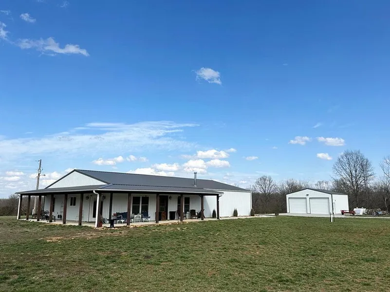 Welcome to your own private, country oasis consisting of a newer-build home, outbuilding, and 134 acres of recreation and seclusion. Located just 10 minutes south of El Dorado Springs and 15 minutes north of Stockton is this 2 bed, 1 bath, 1,584 sq ft home with many outstanding features. The home was constructed just 2 years ago and boasts an open-floor concept, stunning hickory cabinets, quartz countertops, excellent bar space, wood stove, private well, amazing views, and a wrap-around front porch just made for the country evenings. There is ample storage for vehicles, tools, and equipment in the 2-car garage with bonus workspace plus the 30x30 pole barn with concrete floors, electric, and 10 doors. The property is mostly wooded but features about 10 acres of open ground around the home on the front of the property where a person can fence for livestock or tend to gardens and orchard...