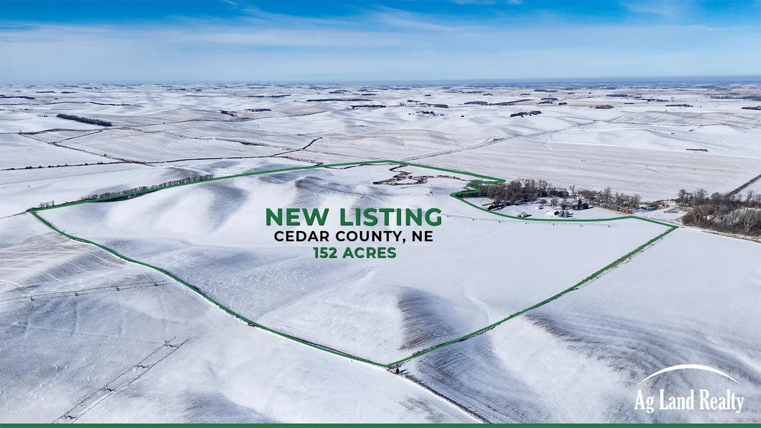 152.89 Acres Irrigated Cropland Southwest of Hartington, NE in Cedar County. This farm is equipped with a 9 tower T& L center pivot. The well is 800 GPM, 215 ft deep, installed new in 2009, powered by 75 hp U.S Motor and Emerson panel. This farm currently is in all row crop production. The soils are predominately Crofton-Nora, Hord silt loam, Betts clay, Aowa silt loam, Hobbs silt loam, Coleridge silty clay, Nora and Shell silt loam. FSA reports 151.43 acres farmland, 145.71 acres cropland, 171 BPA PLC yield for corn, 49 BPA PLC yield for soybeans and 130.95 base acres. All the fences have been removed from the property. This farm has excellent road access, is close to major markets, rolling topography and is located in a very aggressive farming community. Very clean, well-managed property, open for the 2025 growing season.