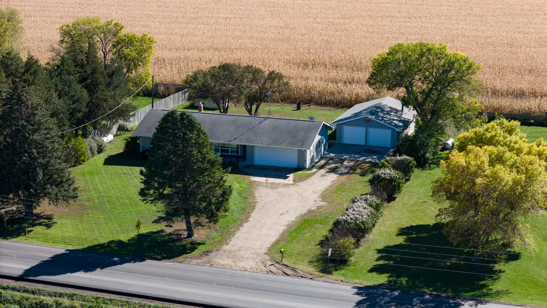 A little country so close to town. Lovely ranch home on blacktop road featuring large living room with gas fireplace, opens to dining and kitchen with lots of cabinets. Main floor laundry and mud room just off kitchen. Walk-in tiled shower, 2 main floor bedrooms, plus additional full bath. Lower level offers space for a family room, 3rd bedroom with addition of an egress, plus great storage. 2-stall attached garage, with an additional 3-car detached garage. Enjoy looking out your front or back windows to open views. Property being sold "As Is"