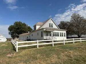 In town acreage with 3-bedroom home. This home has updated kitchen with appliances, dining area, large living room, home office, laundry room with full bathroom, main floor master bedroom with 1/2 bath, full bathroom off dining area and front enclosed porch. The upstairs offers 2 bedrooms with individual closets and one shared closet. This home has a 2-car oversized finished attached garage with heat and overhead doors. An additional detached 22x24 garage, fenced in yard, mature trees for shelter and privacy as well as room to add additional storage. All this sits on 1.41 acres with updated septic system and electrical.