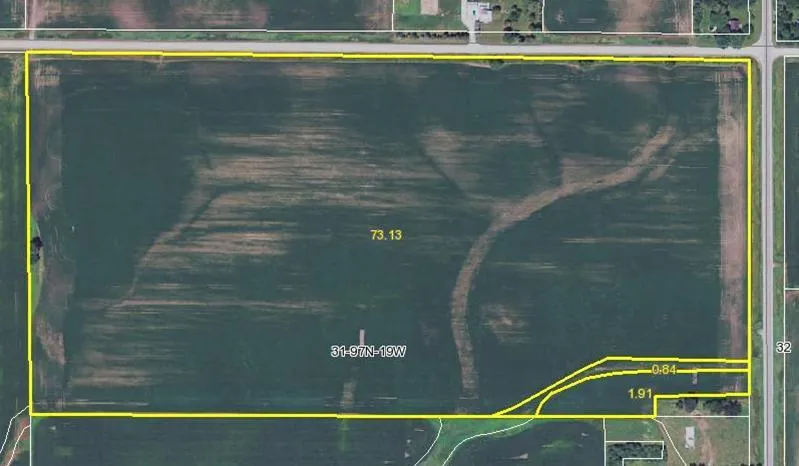79.4 acres, m/l, with 75.0 crop acres and average CSR of 68.9 to be offered as a single parcel of land.