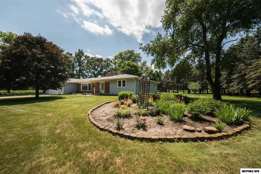 Rare opportunity! This in town acreage is situated on 2.35 beautiful manicured acres lined with Blue Spruce trees on the North side. The home features an open floor-plan, cabinets and countertops galore, a beautiful bricked fireplace, 2 family areas, sliders to a spacious deck with remote control SunSetter Awning, a master bedroom and bath plus 2 more bedrooms and 1.5 baths. Oversize double garage with entry into a magnificent mudroom, laundry and the bath with a shower to keep the kids corralled. The additional out buildings include a garden shed, a Morton Building that has electric, water and gas that could be turned into a fantastic Man Cave' currently being used for a workshop. This property has city sewer and water and the existing well is used for watering the garden and lawn when needed. Call a Realtor today! 641.529.1525