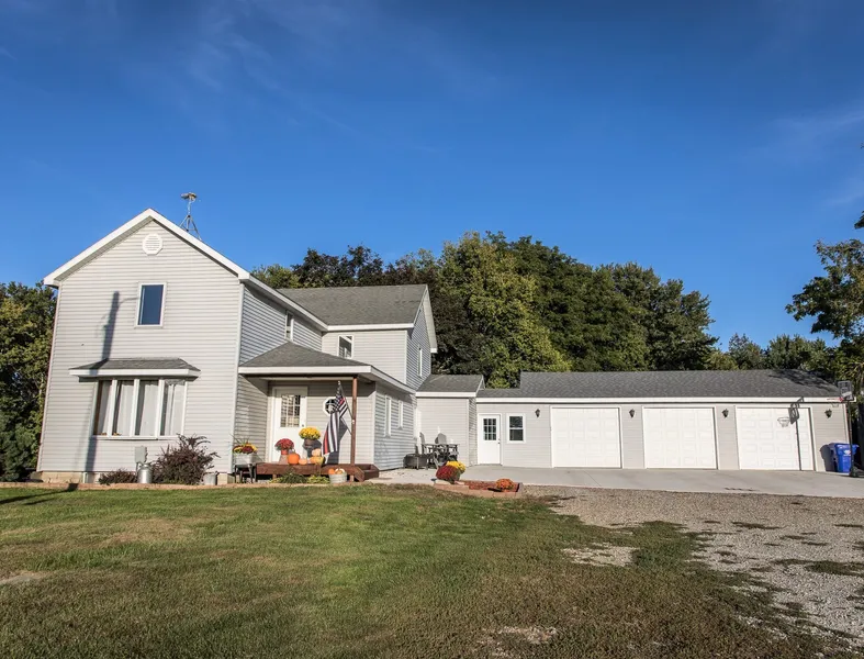 SECLUDED ACREAGE! This home features 4 acres of peaceful living in the country! Bring the animals and toys, there's room for all! The newer attached 3 car garage doubles as a Man Cave, featuring Heating/Cooling and a fun bar area to hang with friends and newly poured concrete approach & pad. The updated master bedroom with bathroom also features a walk-in closet for maximum storage. Other updates include a kitchen refresh. Outdoor is a quonset hut for extra storage. Call TODAY to schedule your private showing before this unique property is gone!