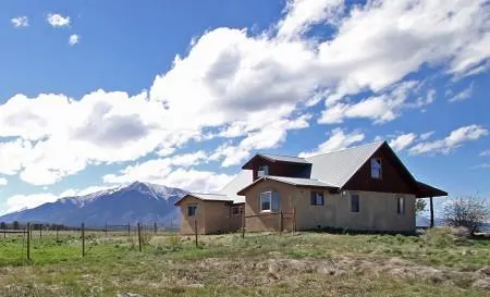 This 24.32 acre horse property adjoins National Forest and borders BLM, offering privacy, peacefulness, and stunning mountain views. Spacious, open floor plan. Designer kitchen features granite counter-tops and a center work island. Living area boasts window framed mountain peak views and a cozy wood stove. The large master suite has a sitting area, a gas stove, skylight, and full bath. Another bedroom, half bath, and laundry complete the main level. Upper level has the third bedroom, a .75 bath, and family room. Specialties of this fine home are the custom beetle kill ceilings and trim and the porcelain and heart pine flooring. There is also a 710 SF, 2 bedroom, 1 bath rental or guest house. Large workshop, corral area for the horses, and a domestic well. 24.32 Acres 2080 SF 2-story home, 3 Bedrooms 1 full, 1 three-quarter, 1 half bath Electric Radiant Heating + Natural Gas Stove & Wood Stove Domestic Well Septic System Hardwood, Slate, and Tile Flooring Stucco Exterior and Metal Roof.