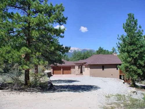 Low maintenance acrylic stucco, stone and cedar facia/ soffit/ accents on this builder-designer home on 2.64 wooded acres between Buena Vista and Salida Colorado. Flagstone front entry, 50 year comp roof, hurd windows. Great room has oak hardwood flooring with tongue and grove ceilings, high efficiency gas log fireplace. Kitchen has custom wormy maple cabinets with granite countertops and stainless steel appliances, ceramic flooring. 4 bedrooms plus an office, master bedroom has oak hardwood flooring. One spare guest room, has pine flooring, the other two have carpet and office has ceramic floors. Three full baths all ADA compliant, central vac and 547 sq. ft. of cedar decking/patio.