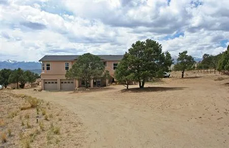 Situated on 1+ acre in Pinon Hills Subdivision overlooking Salida. Astonishing views of the rugged peaks of the Collegiate Peaks Mountain Range, Sawatch Range, and the Sangre de Cristo Mountains. Built in 1999, this 3896 SF home encompasses 5 roomy bedrooms and 3.5 baths. The spacious, beautiful master bedroom has east and south-facing windows that create passive solar heating and wonderful natural lighting. Completing this suite is a double walk-in closet; Double sinks, Garden tub, and separate Shower. Your family chef will especially enjoy the expansive kitchen and dining room. Beautiful wood laminate flooring; Large walk-in, shelved pantry. The kitchen also features a dome skylight. The living room has a bay window and built-in entertainment center shelving and cabinetry. Use the off-set den for a library, office, exercise, or computer room. Cuddle up by the wood burning fireplace on those cold winter days. This homes main heating is propane forced air in the upper level and electric space heater on the lower level. In the summer time, you will want to incorporate the east-facing deck and the 2-level west facing deck into your living area. This is the perfect spot for a spa/hot tub, or just enjoy a wonderful meal and catch the sunset.