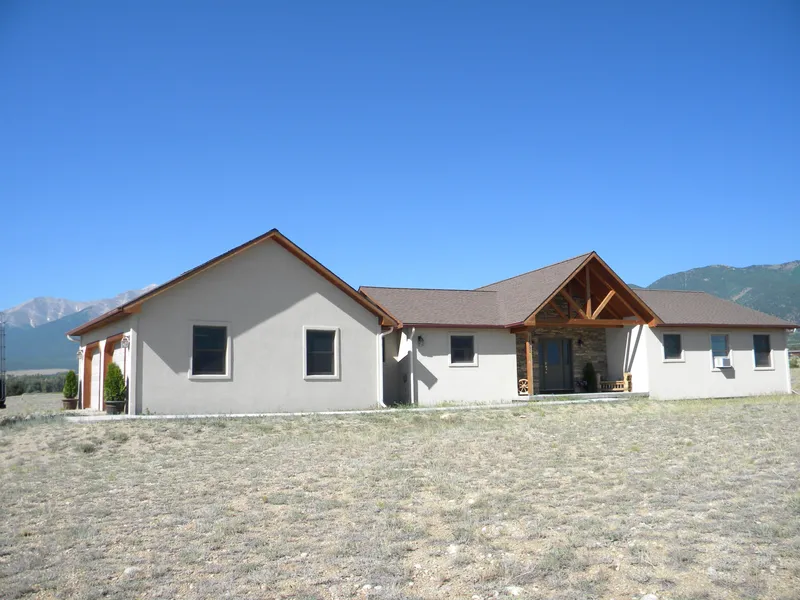 Beautiful home with a panoramic mountain view setting. Bright and cheerful with plenty of windows allowing an abundance of sunlight into the home. Delightful kitchen has beautiful cherry wood cabinets with glass front display cabinets and 2 lazy suzans. Relax in the open living room with tongue and groove vaulted ceilings, a gas rock fireplace with wood mantle and sliding glass doors leading to the back deck. Utility sink plus discrete storage space aids laundry room organization. The private master bedroom with a walk-in closet has an en suite master bath highlighted by tile floors, Corian sink and lots of storage. Two additional, spacious bedrooms plus a full guest bath make this 1814 square foot home ideal for hosting visitors. Two car garage with enough room for a workbench and shelving. Expansive back deck plus covered front patio so you can enjoy the precious views of the Collegiate Peaks and Buffalo Hills. $3,000 flooring allowance to be credited at closing.