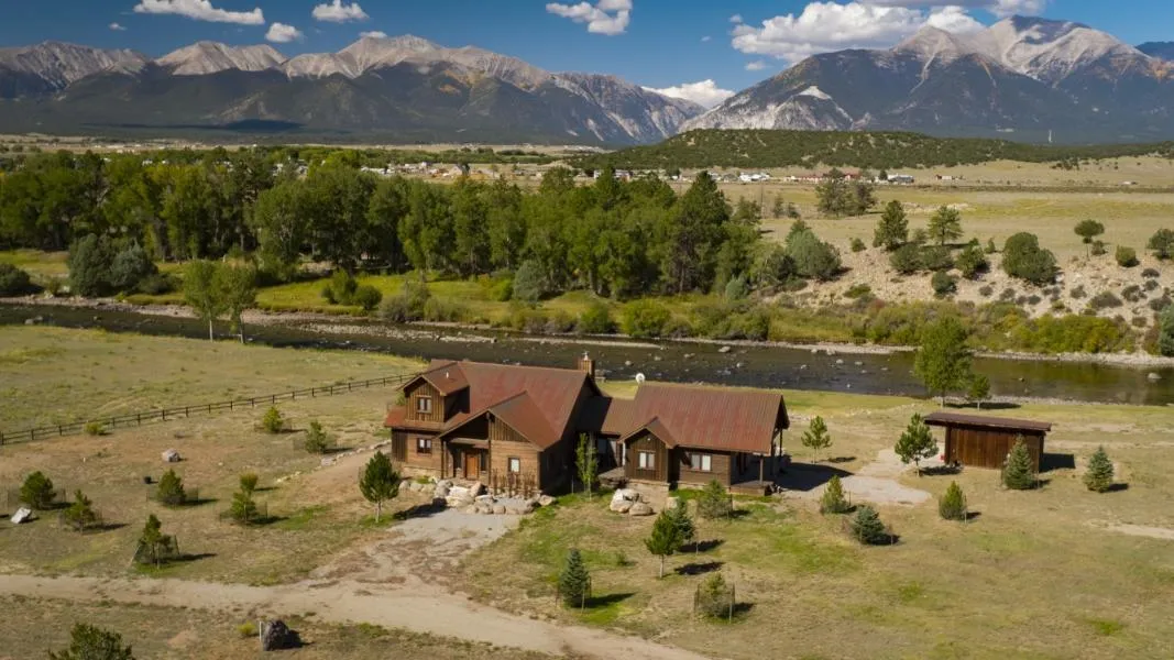 This property checks all the boxes. A true Colorado retreat property on 16 acres featuring 2,790 square feet of luxury in a private setting with 700 feet of arguably the best Arkansas River Frontage in Chaffee County. 4 bedroom, 5 bath custom home designed for single level living with a guest bedroom upstairs. The office and detached bunkhouse can be used as bedrooms as well for a total of 6 bedrooms. The north wing of the home can be locked off for guests or rentals without interrupting the flow of the main portion of the home. Massive stone fireplace and log beams accent the detailed craftsmanship. High end furnishing are included making this a turn key move in. You don`t see or hear the highway so you can relax and enjoy the sound of the river from the oversized partially covered deck. When you`ve had enough fishing and relaxing you can head into the mountains to horseback, hike, ATV, or 4x4 right from the property on thousands of acres of BLM bordering the property.