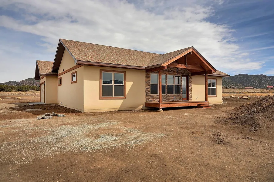 Brand new construction! This ranch home has contemporary, upgraded features throughout! Tile flooring across the kitchen and living room room make this space open and airy. A large kitchen island is covered in a stunning granite countertop. All of the kitchen cabinets and drawers are slow closing. The master bedroom has a picture window that perfectly frames the view of some of Chaffee County's fourteeners. The full master bath includes a walk-in tiled shower with a glass door, a stand alone soaking tub, and beautiful tile on the floors and walls. Two other bedrooms share a full bathroom with a double sink vanity. The deck on the back of the home is positioned perfectly for privacy from the neighbors. This home is classically painted and designed for comfort living and mountain views enjoyment!