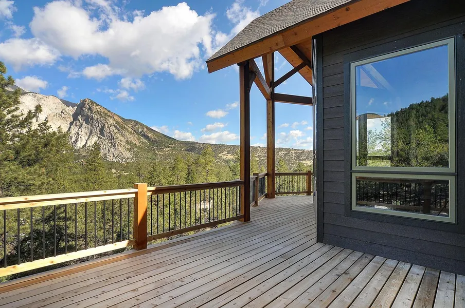 MLS #5535800 - Gorgeous new custom built "Timber Frame" mountain home tucked away on a heavily treed 4.5 acres. This home boasts beautiful timber frame trusses, vaulted ceilings and huge picture windows with views of the Chalk Cliffs and Mt. Princeton. The massive picture windows have stunning views directly facing the Chalk Cliffs which brings in lots of light as it changes across the mountains throughout the day. The high ceilings with exposed beams are complimented by the floor to ceiling beautiful rock fireplace in the living room. This mountain home boasts an open floor plan in the living space which is perfect for entertaining. The Master suite is located on the main floor with master bath and walk in closet. Two additional bedrooms each offer their own bathrooms. This fine home builder provides high end quality construction featuring custom tongue and groove ceilings throughout, beautiful hardwood floors, high end kitchen with stainless appliances and a gorgeous walk out deck off the living space that takes in the gorgeous views. The bathrooms are absolutely stunning with rock walls, beautiful cabinets, and tiled showers and tiled floors. The exterior of this custom home is attractive and features smart siding wrapped with rock and stone. The exterior living space can be accessed off the living space as well as the Master Suite and includes a wrap around deck to sit outside while enjoying the quiet peaceful seclusion. This beautifully treed property with the majestic views of Mt. Princeton and the Chalk Cliffs makes this exquisite fine Timber-Frame home truly a special gem tucked away in the mountains. Construction of this custom fine home slated for completion by July 2020. Offered by appointment.