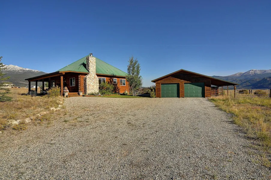 The pursuit for the ideal mountain home is found in this log home complete with a metal roof, wrap around deck and majestic views of the Collegiate Peaks. Fully appreciate mountain living in this open concept floor plan designed to optimize the views and natural sunlight. The spacious living room welcomes you with rich wood tones, vaulted ceiling and wood burning stove insert and stone hearth creating a delightful living space. Efficient and lovely kitchen offers flexibility whether entertaining, utilizing the large island for preparing the garden harvest or enjoying the morning sunrise from the corner dining area. Beetle kill pine cabinets, granite countertops as well as valuable storage options are just a few of the highlights enjoyed in this kitchen. Terrific bedroom options with two master suites, one on the lower level ideal for guests plus a spacious loft suite with captivating views and reading nook! The third bedroom, located on the main floor, also offers a peaceful work from home opportunity. The extended outdoor living options provide space to enjoy the crisp mountain scenery from the protected garden patio or the alluring covered decks - ideal after a long day enjoying the nearby hiking and biking trails. Existing fenced garden with raised beds and the enchanting finished shed, complete with 12 solar panels and promote enjoyable hours for hobbies and leisure activities. Easily accessible on a paved road just minutes from downtown Buena Vista, a detached garage, pleasing landscaping and larger lot create a highly desirable property.