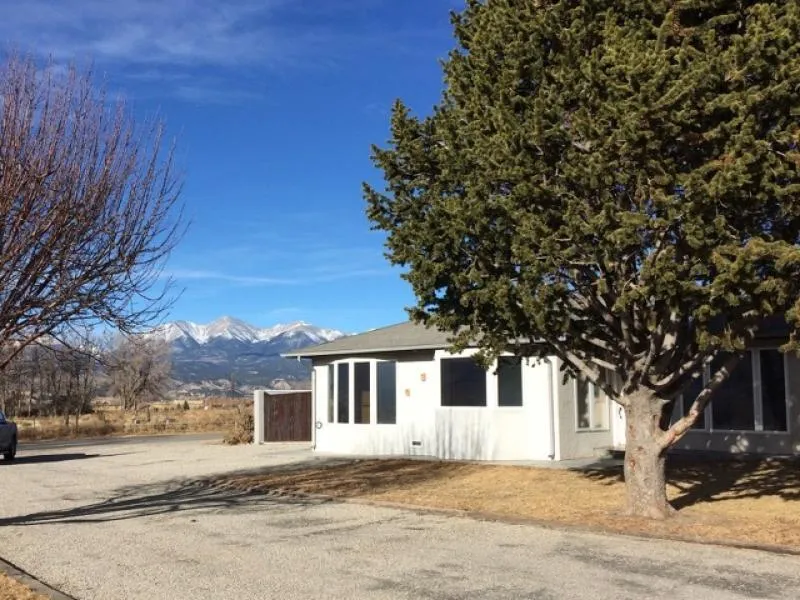 Open floor plan. Elegant Master Suite and hardwood floors, adjoining study/den, & Master Bath with oversized jet tub, large 2-head walk-in shower. Walk-out patio, with retractable awning, on west side of Master Suite, overlooking Sawatch Mountains. Exceptional kitchen, with oak cabinets, granite counters, center island, gas oven/range with exhaust hood, Viking Refrigerator. Warming drawer, wine cooler, & second sink on center island, & room for four at high-counter, & pair of nice built-in cabinets. Large living area with propane fireplace & thermostat-controlled wood-pellet stove. Low maintenance stucco exterior & cement wrap around patios. Oversized 2-car garage, plenty of parking & extra storage shed. Outdoor propane fired pizza oven & large wine cellar. 2 acres fenced with domestic well. Plenty of mature deciduous & fir trees. Less than a mile to Arkansas River and/or downtown Salida.