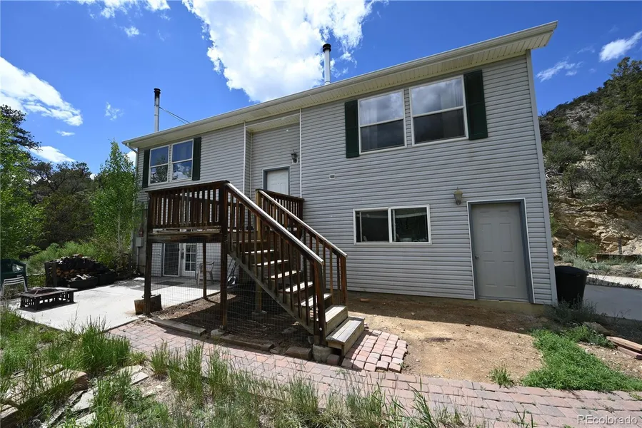 5700880 - This 9.4 acre property is surrounded by National Forest on all 4 sides - no covenants, no neighbors, yet you are a fast 20 minutes from town on an excellent, year round county road. This modern, modular home features a spacious main level with living, dining, kitchen, Master suite with walk-in closet and full bath, second bedroom and a second full bath. There is a wood burning stove in the living area and a cozy propane fireplace in the Master bedroom. The dining area opens out onto a large back deck. Down an open flight of stairs is the walk-out basement with an additional bedroom, half bath, living area, laundry and utility room and large two car garage. The double doors lead out to a patio facing a seasonal streambed filled with aspens and cottonwoods and backed by views of the mountainsides above. The home is powered by a 24V solar system with gel battery and generator backups, and a buried 1000 gallon propane tank. There are historical mines and a spring on the property, as well as beautiful rock formations and a wide variety of vegetation. Wildlife of all kinds frequents the area: deer and elk, moose, bighorn sheep, bobcat, turkeys, mountain lions, coyotes and bears. Just over the hill is the historic ghost town of Turret, as well as Aspen Ridge, hiking trails, and more. Immerse yourself in this place of quiet beauty and history and make this your full time residence near Salida, or a part time getaway! Live off the grid with all of the comforts of a conventional home.
