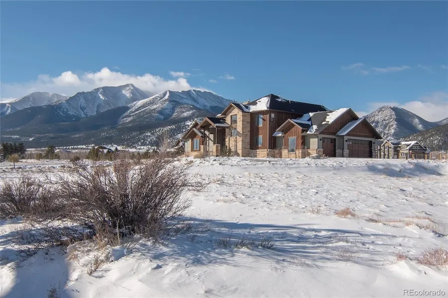 This 4-bedroom contemporary home with Farmhouse elements features views from every window, the back patio and second story deck of the surrounding Collegiate Peaks mountain range, the rugged Upper Arkansas River Valley, and serenity of the nearby pastures. Move-in ready; enjoy the many amenities of The Reserve and the outdoor activities of the area. This modern home includes a blend of colors and textures that a discriminating buyer would choose – natural, relaxing, barn-wood accents, stone, wood, creative use of glass and black matte hardware accents. Main floor living with Primary Suite, guest room with ensuite bath, and the great room with 18-foot ceilings, a Linear Premium fireplace by Xtrordinair, and wall of windows facing Mts. Princeton, Yale, and Columbia. The gourmet kitchen has JennAir appliances, including a six-burner gas stove top and Armoire style refrigerator, custom white...