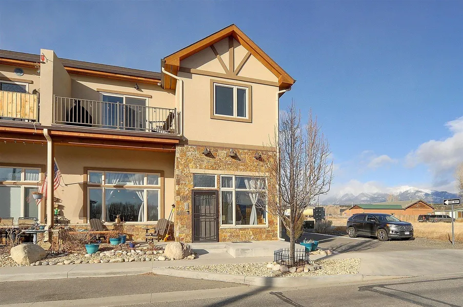Corner unit with commercial potential! This is a unique opportunity in Chaffee County to purchase a two story residence with commercial use allowed on the lower level and living space on the upper level. Built in 2017, this unit is in perfect condition and has a functional layout offering many options for use. When you walk in from the street level the room is big and open with concrete floors and high ceilings. There is a bathroom on this floor with a custom walk-in shower. A kitchenette with a built in mini-fridge and a sink allow this space to serve as a great separate rental or as a large family room. The garage is tall allowing room to park a boat or smaller RV inside. The staircase leads you up to the living area with two bedrooms and another bathroom with a walk-in shower. There is a nice sized laundry room with the on-demand water heater and washer & dryer which are included in this sale. All of the living space is nice and open with big windows and sliding doors that let in tons of natural light. Outdoor space of this home capitalizes on enjoyment and relaxation. You can sit on the front balcony and watch the sunrise over the surrounding mountain peaks, or enjoy soaking in the hot tub out the back door secluded by the privacy fence. You can easily get to the trails from the Monarch Crossing development. Ride bikes or walk to the restaurants and breweries that are close by in Poncha Springs, or downtown F Street in Salida is only a few miles away to tons of art shops, eateries, and shops. This is a great full time residence or an investment for a second home that's less than a half hour away from Monarch Mountain Ski Hill and all other mountain recreation you could imagine!