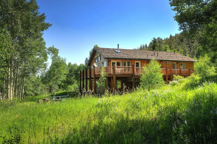 Mountain lodge style home on 7 acres. This is a gated horse property adjoining National Forest and with Little Cochetopa Creek frontage, aspens and tall pines. Open Range Protection. Secluded and quiet. 2738 SF with private main level master suite. Vaulted ceilings, skylights, new windows and exterior/interior doors; Cherry cabinetry and granite countertops; upgraded plumbing and light fixtures, Natural gas. Sleeps up to 5 couples. Quality furnishings. Pack your clothes and horses. Everything else is there. Colorado perfection.