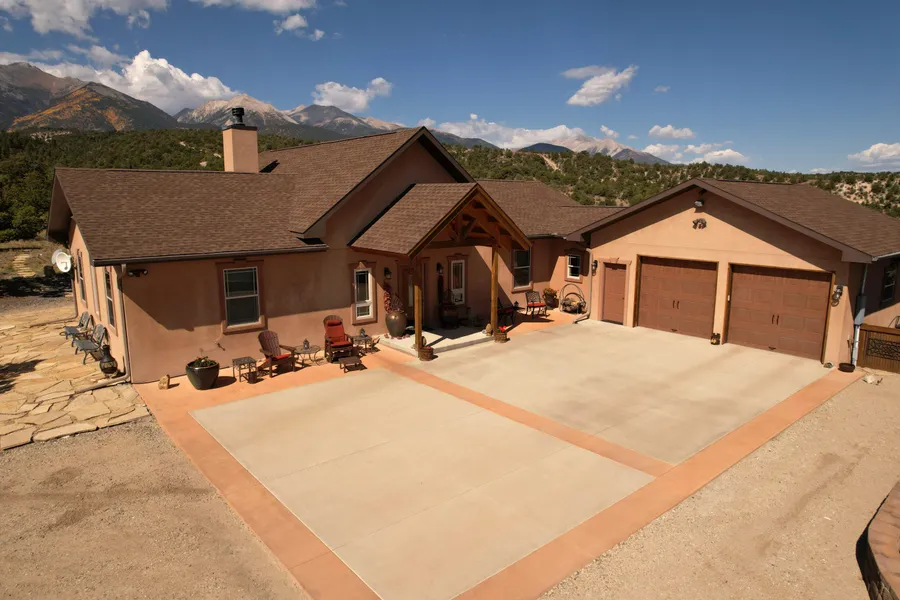 Custom Colorado mountain home on 35.64 acres in the heart of the Collegiate Peaks range. 2,805 square feet, 3 full bathrooms, 3 bedrooms plus a large bonus room currently furnished as a replica 1800's saloon. The open floor plan with a high vaulted ceiling and large windows provides lots of natural light and incredible mountain and valley views in all directions. Hot water in-floor heat and a large wood burning stove provide comfort and efficiency. High-end finishes and trim work throughout. Home is on grid power with a backup generator and the original solar panels and solar system are in place if you wish to connect them for additional backup power or savings. Outside living space is enormous and inviting with multiple connected terraces offering sitting areas in the sunshine or in the shade of the mature trees. The pictures don't do justice to the views from this ridge top building site. You can literally see the entire valley and surrounding mountains from this location and the views are nothing short of breathtaking. The property is 2.5 miles off of Hwy 285 on a gated road making it very quiet and secluded yet is only 10 miles to Salida or Poncha Springs for groceries, restaurants, medical care, and other amenities. Access to public lands, the Arkansas River, Monarch Ski Area, Mt Princeton Hot Springs, and hundreds of miles of trails is all within minutes.