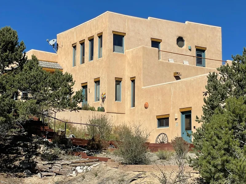 9481618 First time on the market for this amazing, one of a kind, Southwest Home in prestigious Hidden Hills Subdivision. Hybrid Straw Bale and ICF built home. Lower and main floor constructed with 2 X 4 straw bales and upper floor being post and beam with ICF exterior walls provide exceptional insulation value. Custom kitchen and bathroom cabinets by Jerrys Cabinets of Howard. Chefs kitchen with Viking range, grille, and hood. Breakfast nook, kitchen bar, and formal dining room with custom drift wood accents. Large pantry with custom, arched, country door and hinges. Beautiful hand hewn log accent posts and ceiling beams with Aspen tongue and groove ceiling with recessed lighting. Lots of windows and high ceilings give the whole home a bright and open feel. High efficiency fireplace insert for wood heat and cozy atmosphere in the living room with fireplace and chimney made from river rock off the property. Oak flooring in the master bedroom, a corner gas fireplace Kiva, and Jacuzzi bath tub. Home was originally off grid before connecting to Sangre De Cristo. Invertor system uses no batteries. Solar currently provides about 30% of the homes power usage. Propane plumbed generator can be turned on from within the home in a power outage situation. Property borders State land to the south and north. The south section ties into National Forest. Several walking paths have been made on the property. Terraced flower beds with drip systems on the north and south sides of the home. Wraparound patio with unbelievable Sawatch Mountain views provides a relaxing area for grilling and outdoor dining and summer activities. Redwood Balcony off the upper floor has breathtaking views back to the east of Salida and the Arkansas River Valley and Arroyos to the southwest. Not a bad view anywhere in this house or property. Oversized garage with vented work shop area and lots of storage. High producing Domestic well. You cannot describe this home with words and pictures. You must experience it.