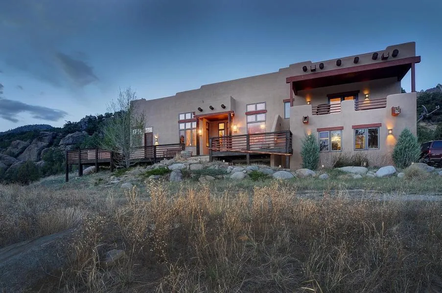 This two story adobe home sits next to the Arkansas River. The mountain views are incredible from several decks and patios. Inside is elegantly decorated with beautiful stone slab countertops, tongue and groove ceilings, and rock accents. The bedrooms are comfortable with windows to capture the scenery. This home is top of the line for mountain living.