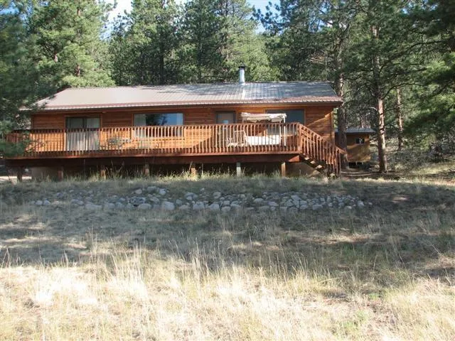 Spacious 1536 SF cedar sided home on 2 acres is surrounded by tall pines and majestic views of the Chalk Cliffs. Open floor plan, vaulted ceiling, and lots of windows and sliding doors that add light and bring the mountain feeling inside. 3 bedrooms and 2 baths. Master suite with a garden tub. Living area has a wood stove, plus there is propane forced air heating. In-house well; Septic system. Large decks both front and back for mountain living at its best.
