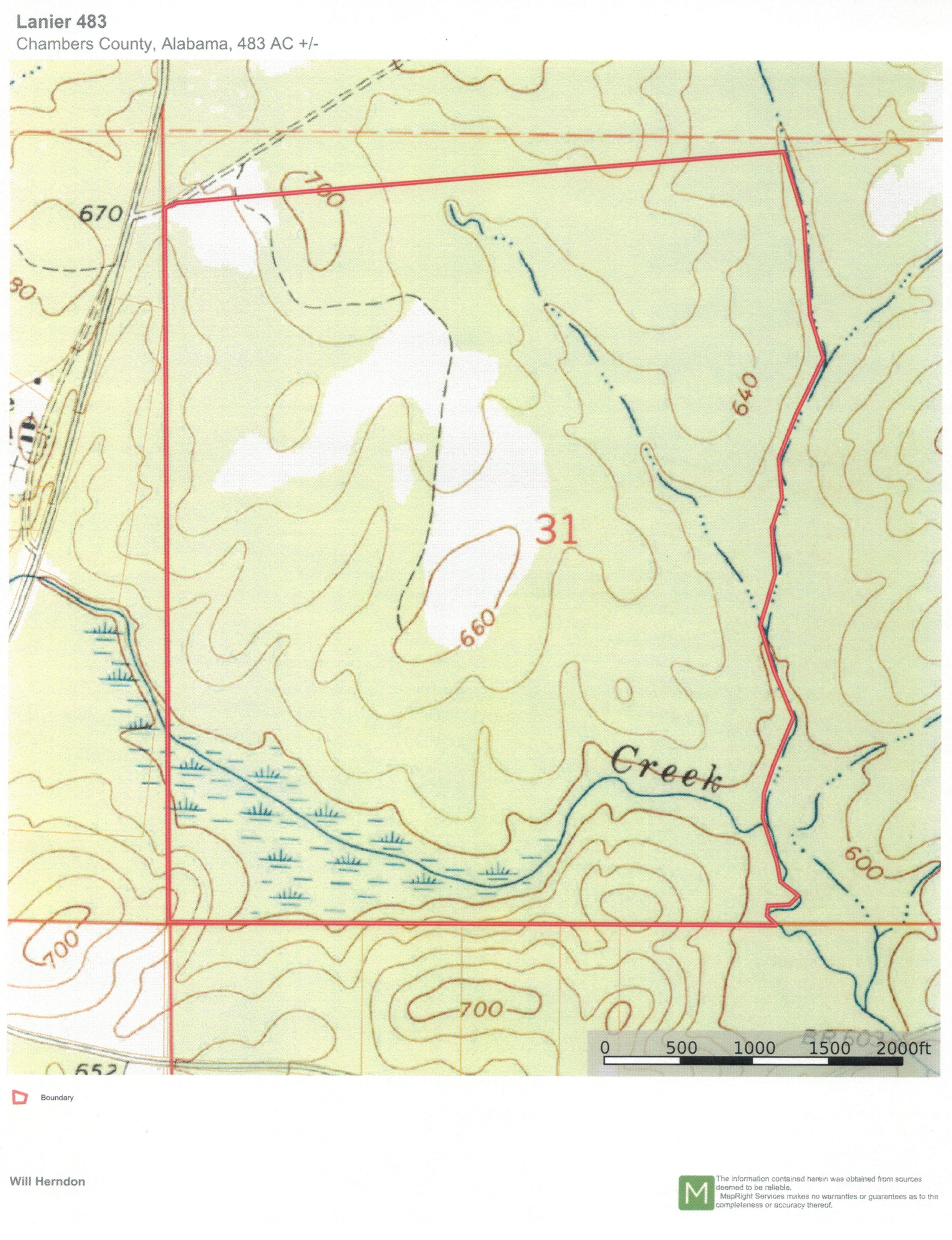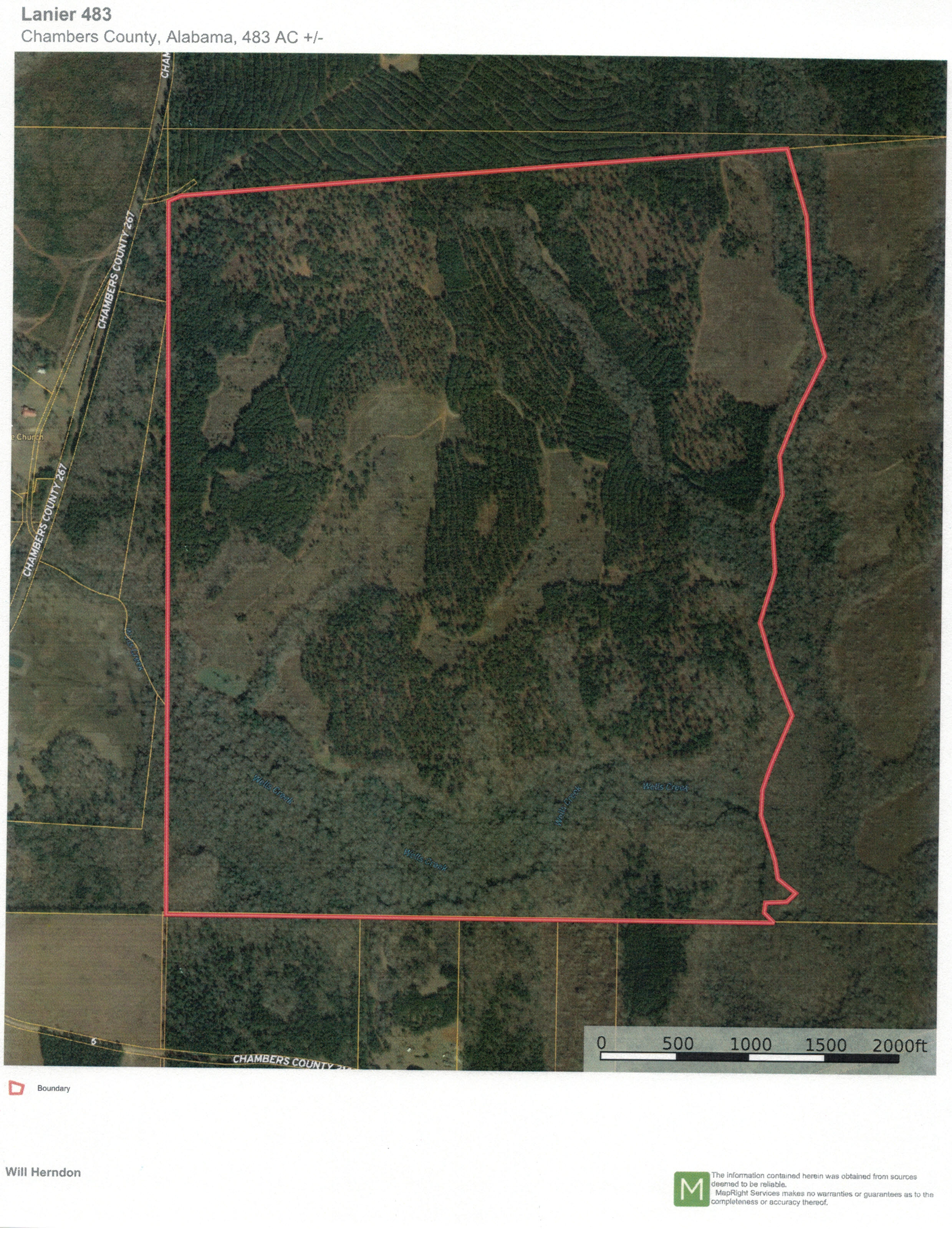 483 (+-) acres located off of County Road 267 near Lanett, AL and close to Auburn/Opelika, Lagrange, West Point Lake and within 1.5 hours of Atlanta. This is a really nice, gently rolling tract of land with lots of recreational appeal along with a great stand of pine and hardwood timber. It has been well managed for many years through quality forest mangagement/prescribed burning and it really shows! The timber composition varies from young stands of planted loblolly pine to heavily stocked pulpwood stands on up to mature loblolly/shortleaf stands that would be ideal for quail hunting. Quite a bit of this pine timber is merchantable and could produce immediate income if you wanted a quick return on your investment. There is a good supply of mature hardwood along two creeks that are located on the tract. Wells Creek is a big creek with good water flow near the southern boundary and the eastern boundary is another creek, a flat bottom that would be great for deer hunting. Both creek bottoms are loaded with mast producing oaks and other types of hardwood trees. The habitat created here by the different age classes of timber is really good and supplies the wildlife with everything it needs. The thick cover under the young timber is ideal cover and browse, the open understory in the mature pine and hardwood stands offer good visibility for hunting and the creeks/springs offer an abundance of water for the wildlife. There are several food plots on the tract and many other areas would be perfect for additional food plots. A good road system is in place and firebreaks are present around most all pine stands making management/burning easy.