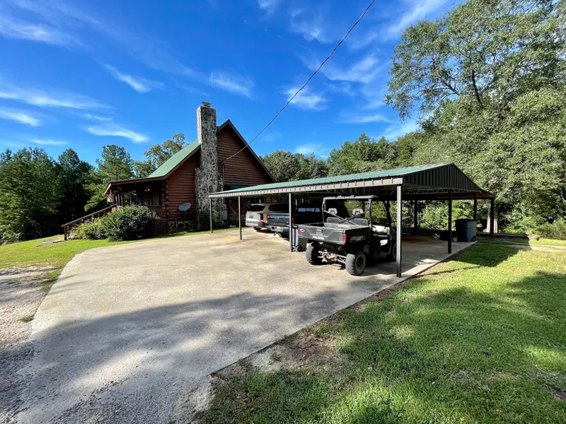 Its hard to know where to start when talking about a property with so much to offer. From the moment you pull off of the old country road and into the gated drive, it feels as if you are immediately removed from the busyness of the outside world. This property offers a tremendous opportunity to the avid outdoorsman or family alike looking for a new hunting camp, a weekend getaway house, or a new place to call home. The road system throughout this property allows for unique access to almost every corner of the farm. As you drive through the roads of this beautiful property, you will see a mixture of timber that consists of younger and older hardwood, pine, and cedar trees. When winding through these roads, you will also come to three different green fields that have been recently planted and set up with shooting houses and feeders in place. One of the best views on the whole property can be enjoyed while sitting on the front porch of the gorgeous log home overlooking the lake. This home offers two bedrooms, two full baths, and a bonus room upstairs that has the capacity to sleep up to eight people. In the winter months, you will not only be able to kick back and enjoy the warmth of the wood-burning stone fireplace but also enjoy a relaxing dip in the jacuzzi on the back patio. To the side of the home, there is a detached three-car garage that provides space for the vehicles or ATVs you may have for riding around the farm. This property also offers an open barn useful for storing equipment along with an attached shop area to use as needed. This piece of property is all-around exceptional and located in the northeast part of Chambers County. Call today to schedule your private showing or have any questions answered that you may have about this property.